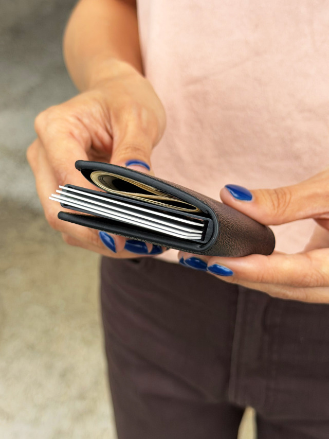 内ポケット:スキミング防止機能付きハードカード入れ1(最大5枚)、札入れ1(最大5枚)、カード入れ2
