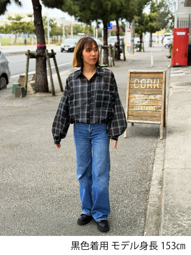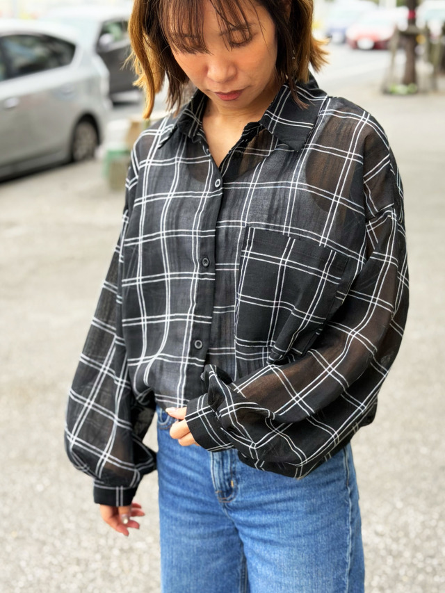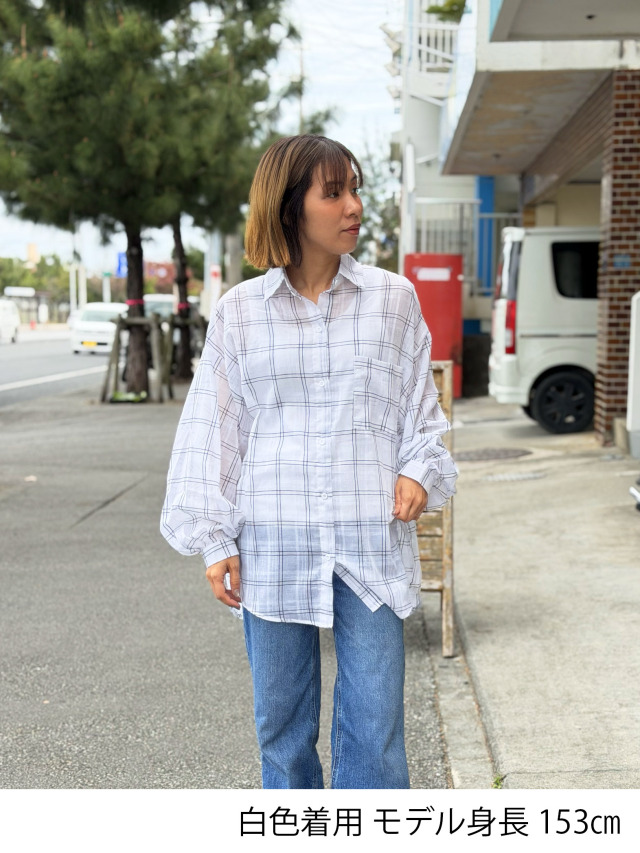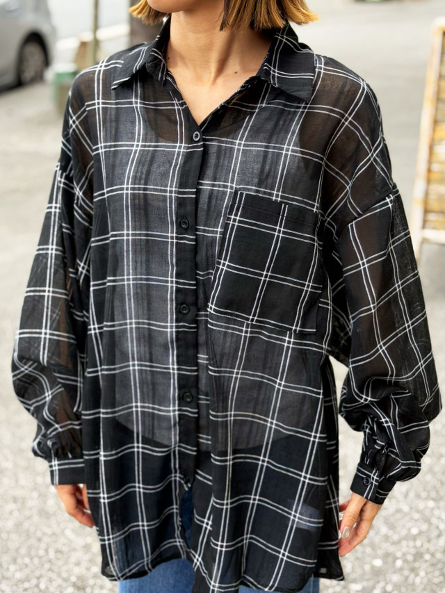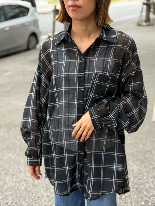 - 《レディース》869 チェック柄のルーズシルエットのシアーシャツ