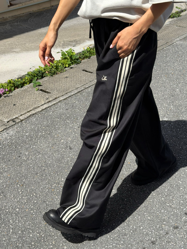スタイリングに程よいエッジを加える、サイドラインデザインのワイドストレートパンツ。