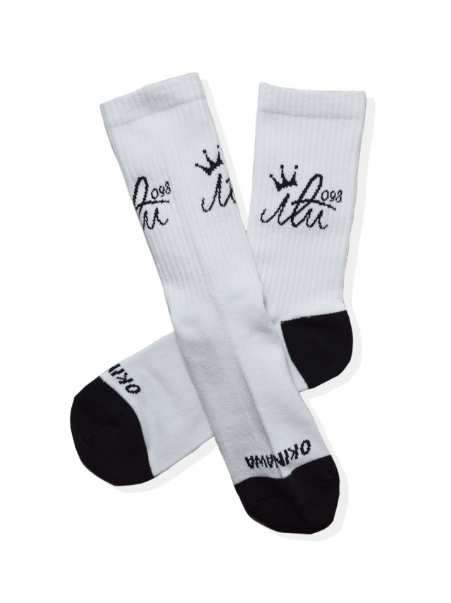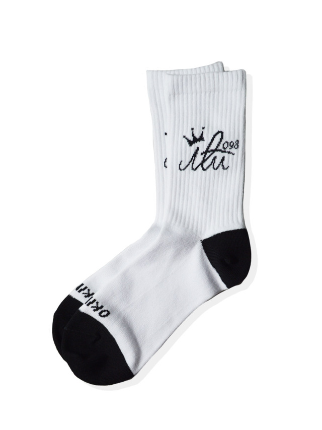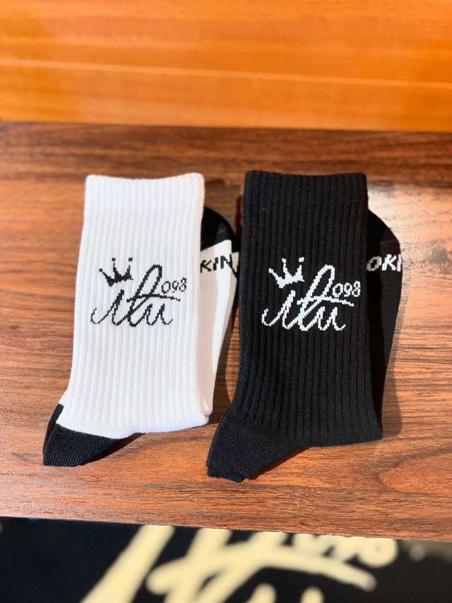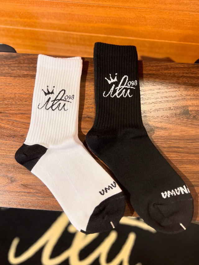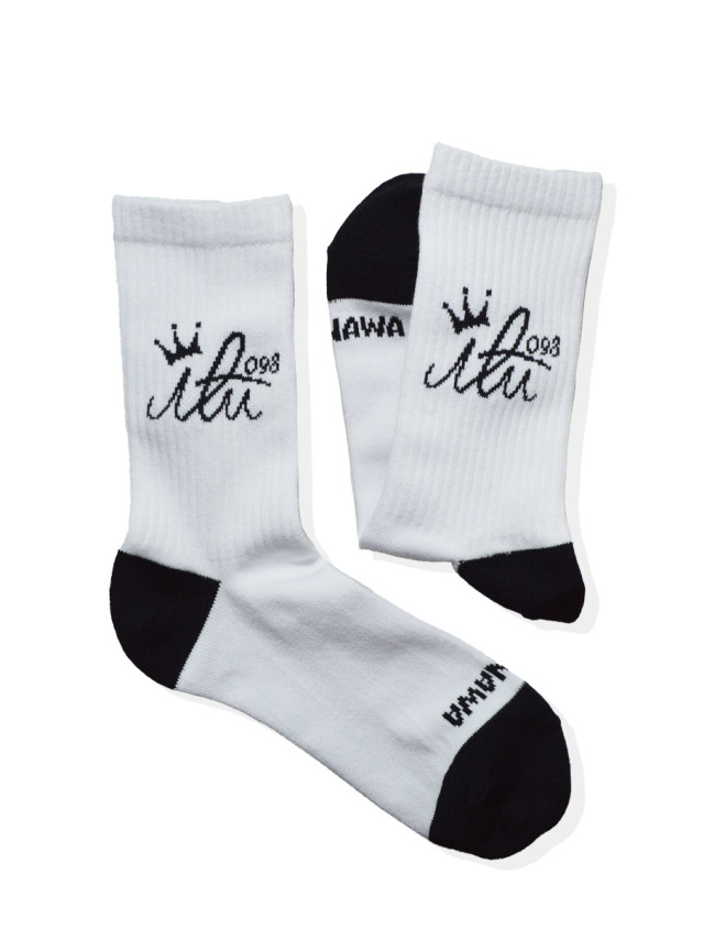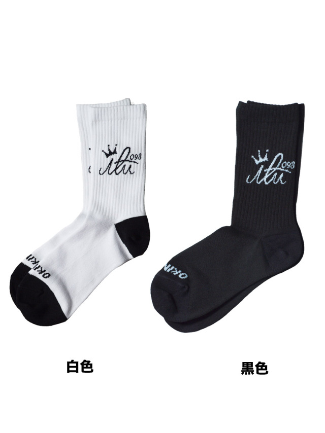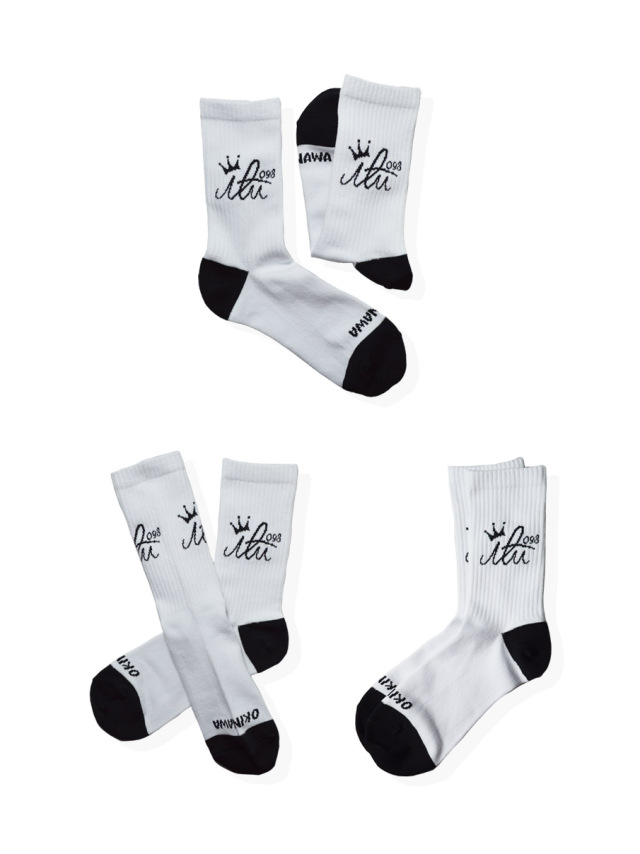 アイルのロゴマークがジャガード織りで編み込まれたミドルサイズの靴下。