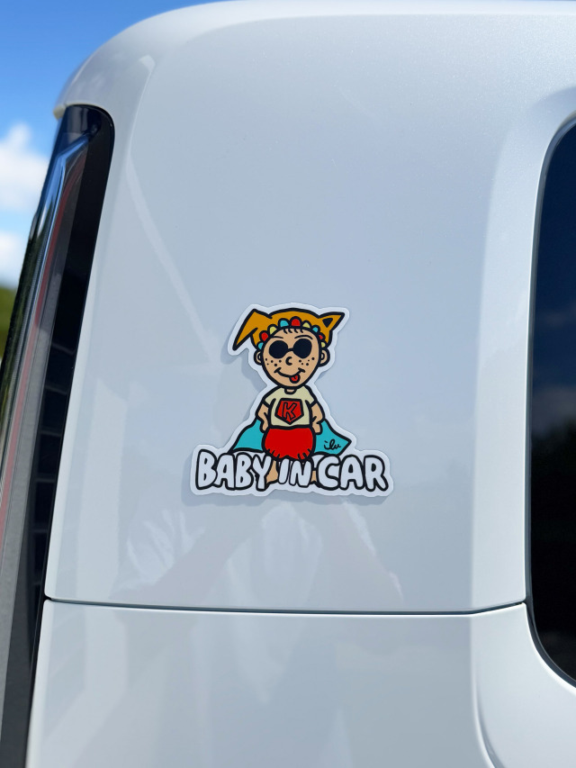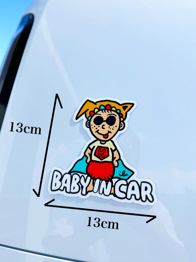 アイルのマグネットステッカーの中でもダントツで人気の「スーパーキッズのBABY IN CAR」を新たなサイジングで製作。前回分よりもひと回り大きく、更に可愛さがぐっと増しました。るんるんでファミリーカーライフを楽しもう!