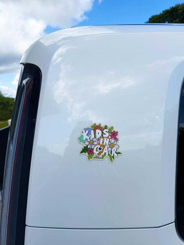 キッズインカーのフラワータイプ。愛理が描くフラワーたちがお出かけを彩ってくれるよ。にこっと素敵な思い出が溢れるドライブとなりますように。